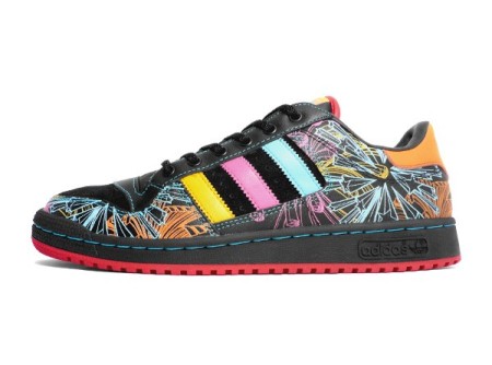 Эти "новоиспеченные" сникеры с праздничным рисунком и разноцветными страйпами представлены ограниченным тиражем в немецком интернет-магазине Оверкилл по цене 99.9EUR за пару.