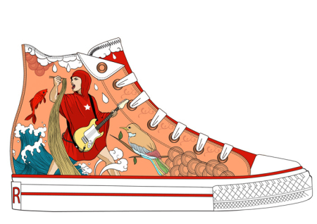 По традиции, основой для творчества стали обыкновенные кеды Chuck Taylor All Stars, которые в ходе работы превратились в полноценное произведение современного искусства.